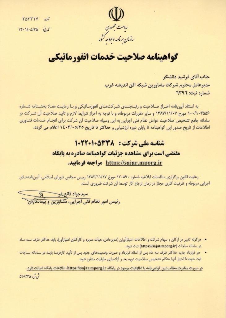 گواهی رتبه بندی و احراز صلاحیت شرکت های انفورماتیکی